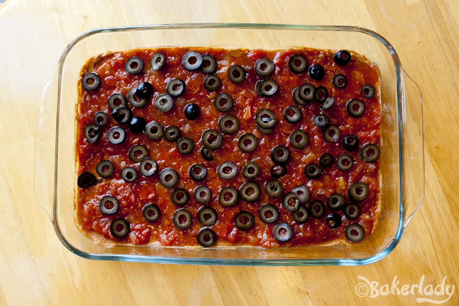 Mix beans and seasoning together and spread on bottom of a casserole dish.