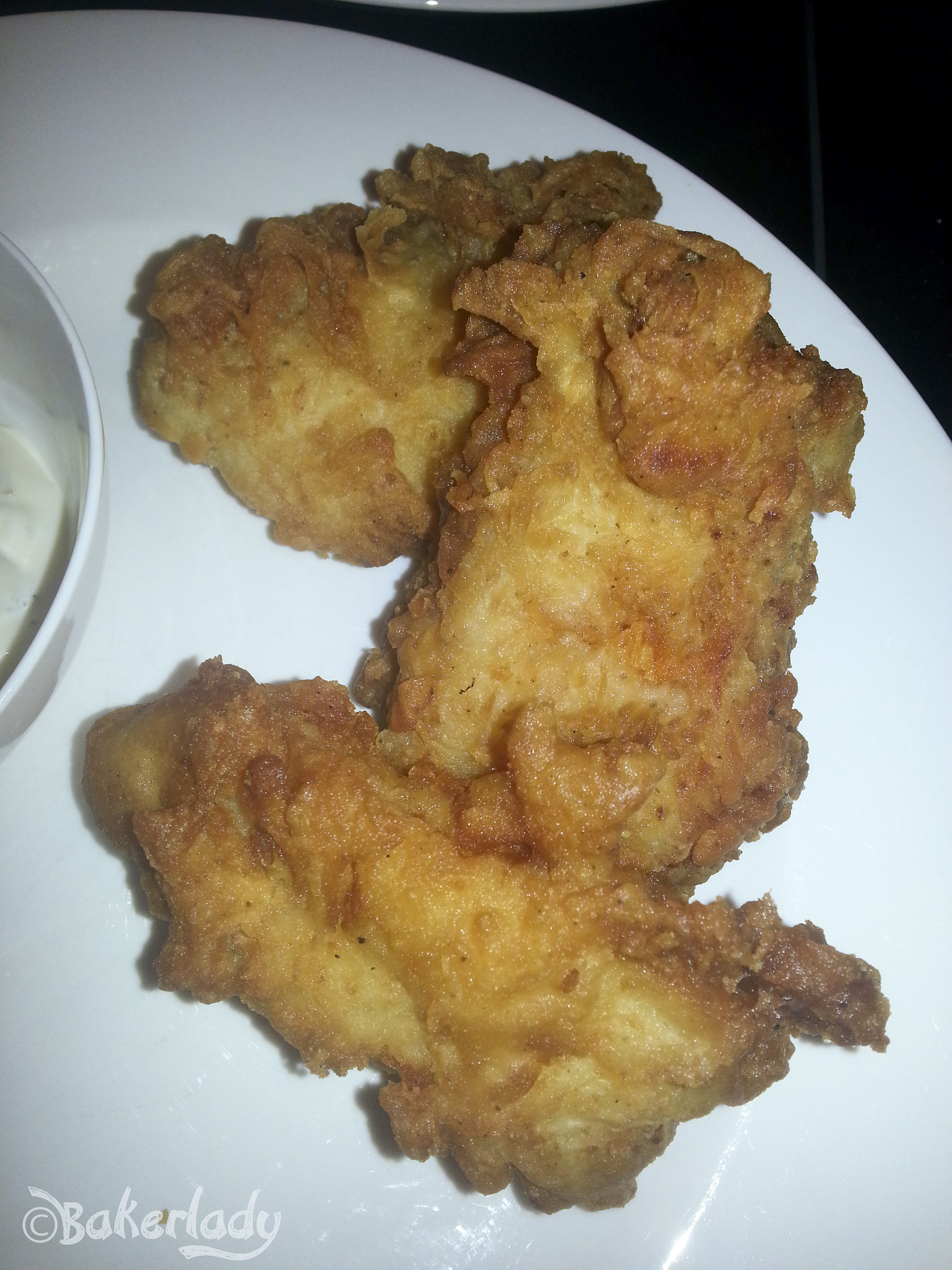 The batter for this fish starts with beer. Obviously that means it’s going to be divine. Because, beer. Add just enough flour and spices to turn it into a batter.  This fish is triple seasoned. Once straight on the fillets, once from flavor in the batter and finally into a seasoned flour dredge. Aside from that, it’s very uncomplicated. Dip, dredge and fry. Boom. Golden perfection.