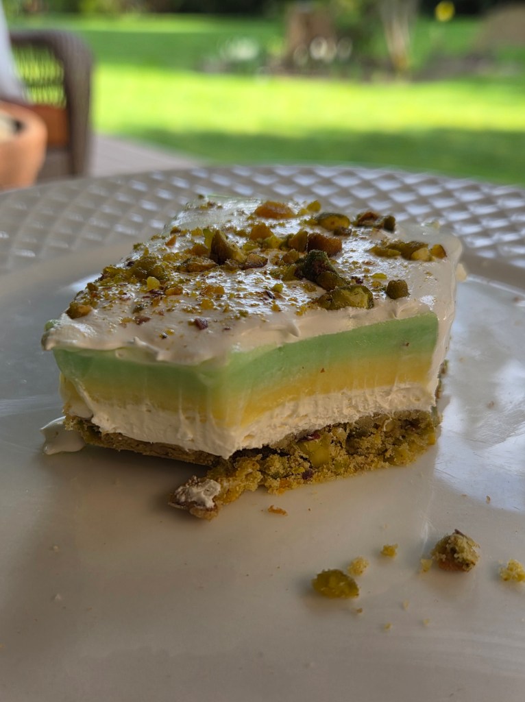 Pistachio is so on trend. Or so my niece tells me. Something about Dubai Chocolate sparking a renaissance of pistachio flavored food items, green and beautiful, filling her social media pages.